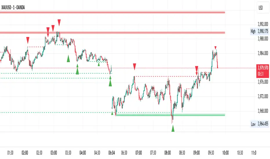 RSI Divergence Zones Detects bullish and bearish RSI divergences using pivot-based logic. Each divergence is visualized with a dynamic horizontal line that extends until price breaks the level. Once breached, the line switches to a dashed style to indicate invalidation.