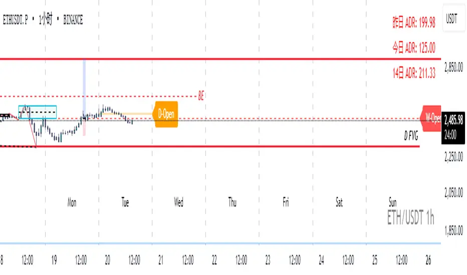 This update introduces the ADR (Average Daily Range) feature, providing dynamic volatility analysis with customizable display options. The indicator now supports multi-timeframe open price levels with enhanced visual controls and an integrated ADR information panel.