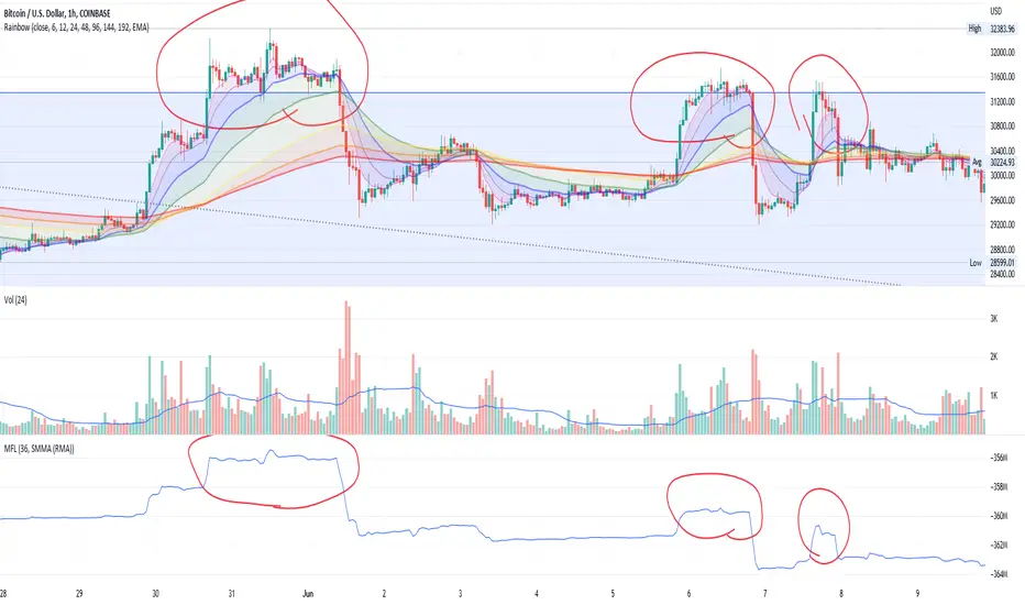 - Divergence: the MFL disagrees with price action, indicating a reversal may be coming soon