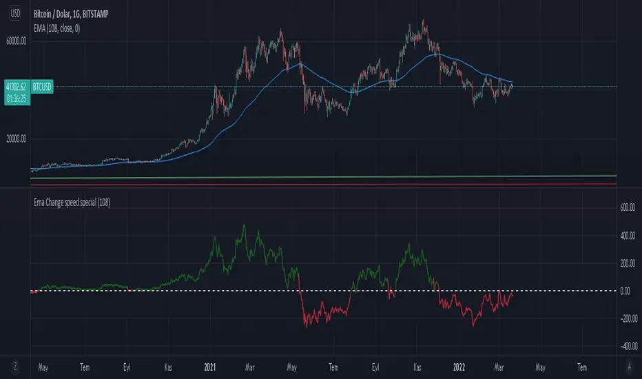 EMA değişim hızını rakamsal olarak gösterir ve grafiğini çizer.