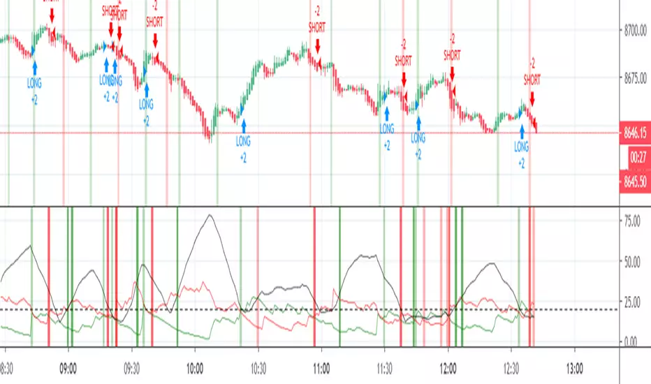 Basic ADX DI with colored bars to show buy and sell signals , made for 1min but shows general signals of strong or weak buy and sell signals.