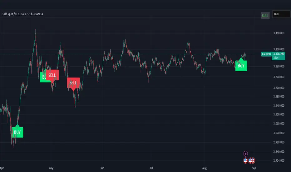 Clean Chart: No boxes, lines, or visual clutter - just clear BUY/SELL labels