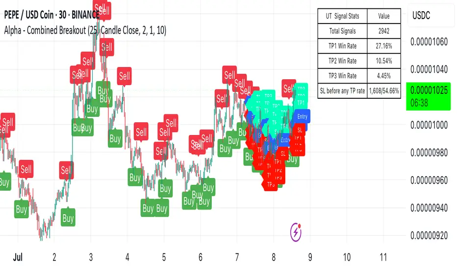 This Pine Script indicator, "Alpha - Combined Breakout," is a combination between Smart Money Breakout Signals [AlgoAlpha] and UT Bot Alert, The UT Bot Alert indicator was initially developer by Yo_adriiiiaan