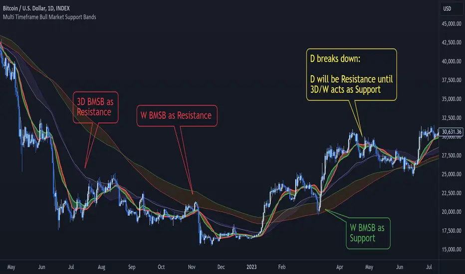 Multi Timeframe Bull Market Support Bands (BMSB) Indicator