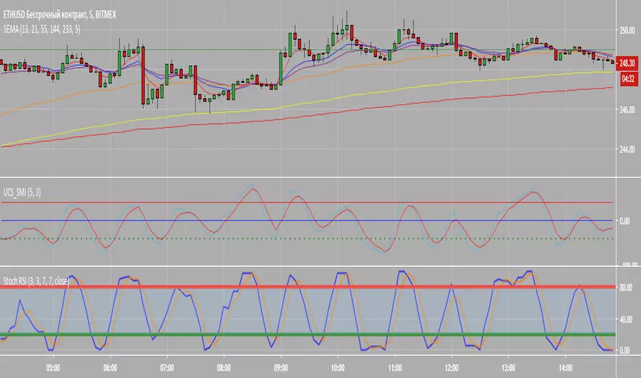 Более короткий период Stoch_RSI , выделены зоны покупки и продажи