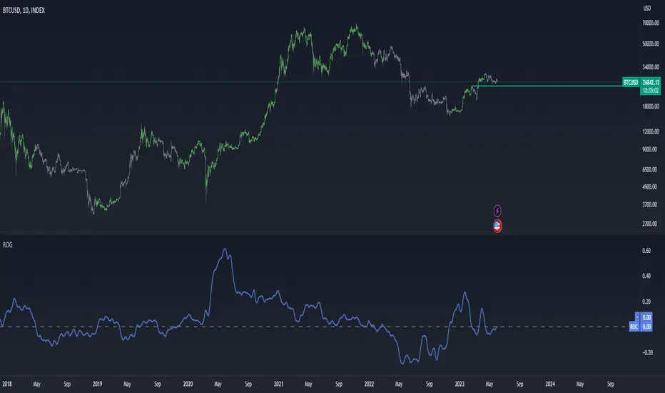 Risk-on plotting (when ROG above zero bars are green otherwise gray)