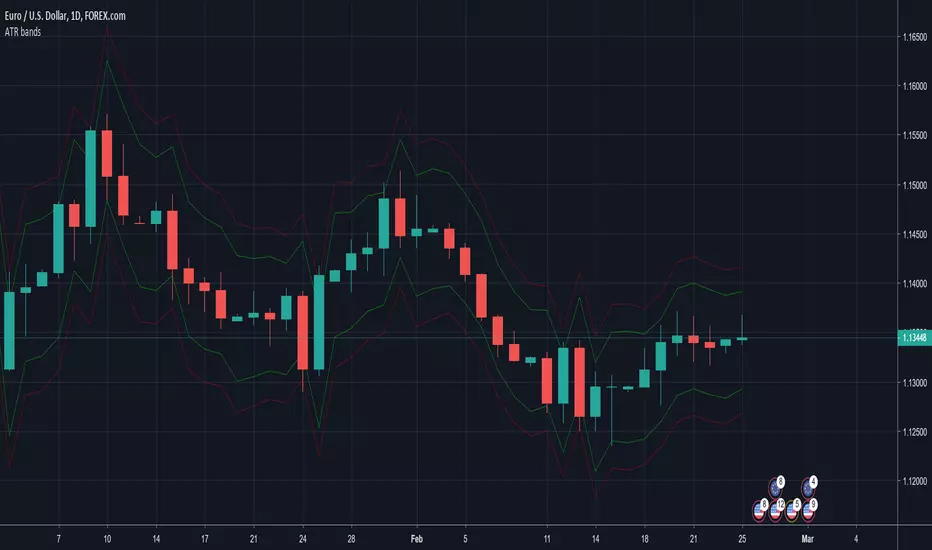 Shows stoploss & take profit ATR bands based on the daily ATR