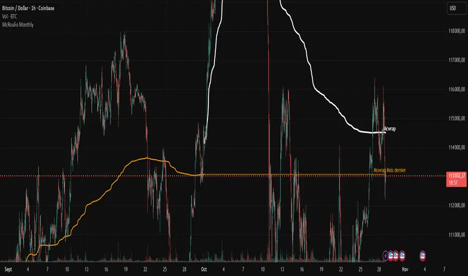 The McRoulio indicator is designed to provide a clear view of market value relative to the current and previous month's starting points. It must be used on intraday timeframes (like 1H, 4H, 15m) to function correctly.