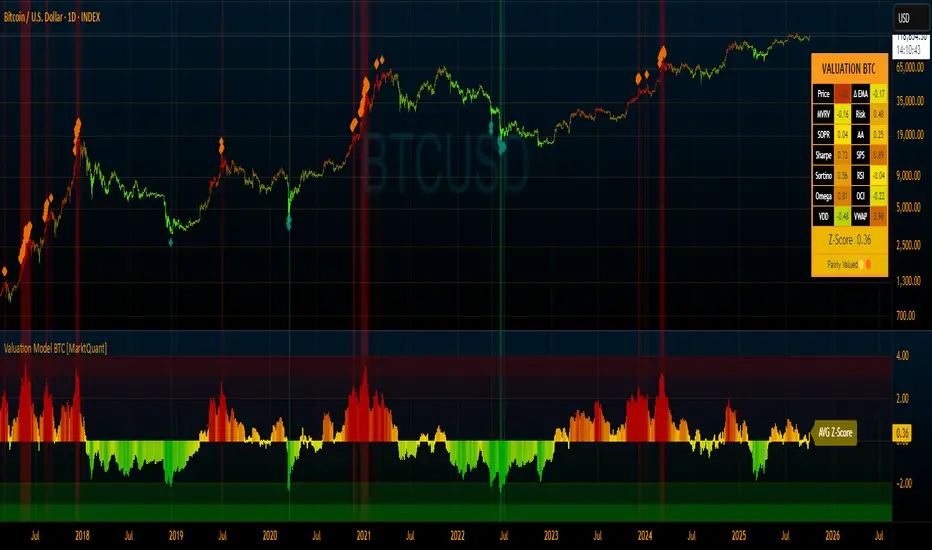 Interpretation: Use the table’s average z-score and message to assess Bitcoin’s valuation. Plotted lines provide detailed metric analysis, while background highlights and symbols signal DCA opportunities.
