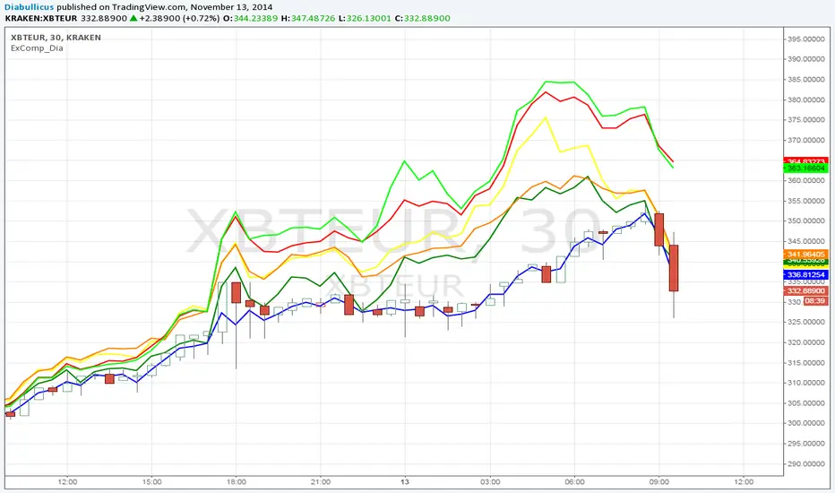 This script helps you compare bitcoin prices across different currency pairs and exchanges. Quickly judge at a glance if "your" exhange currently trades above or below the rest of the market.