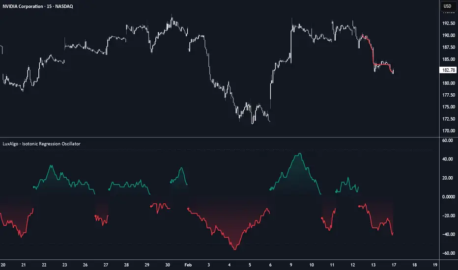 The Isotonic Regression Oscillator indicator aims to quantify the degree of trendiness and structural complexity in price movement by comparing non-decreasing and non-increasing fits. It uses the Pool Adjacent Violators Algorithm (PAVA) to determine the best-fitting monotonic sequence for a given period, providing a normalized oscillator that highlights the strength and direction of the underlying trend.