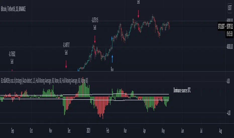 This indicator calculates the difference between the BTC.D and the selected moving average of BTC.D.