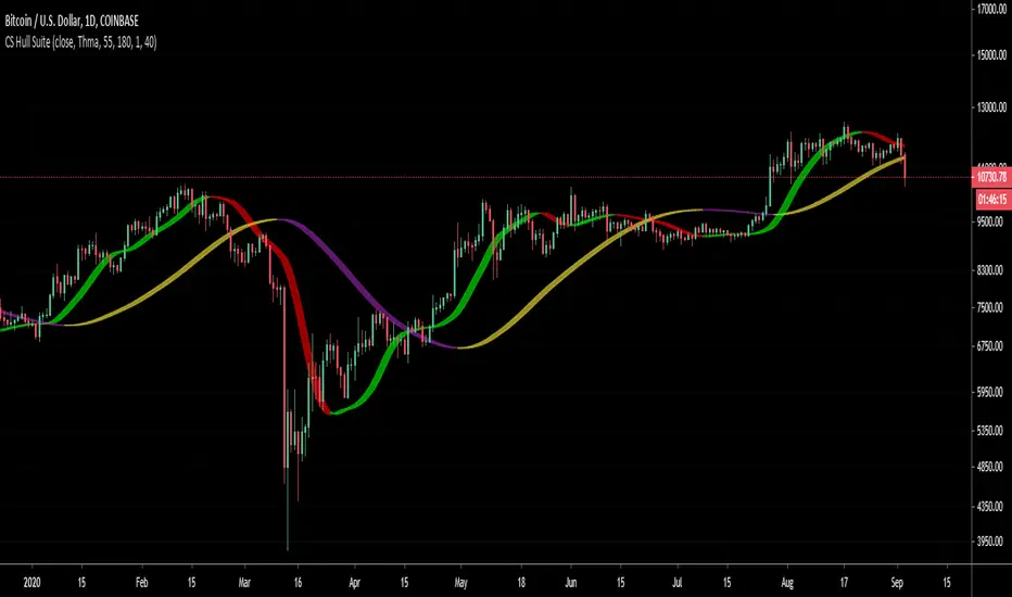 This indicator displays 2 Hull Moving Averages (HMA) for a quick representation of both floating S/R levels and swing entries.