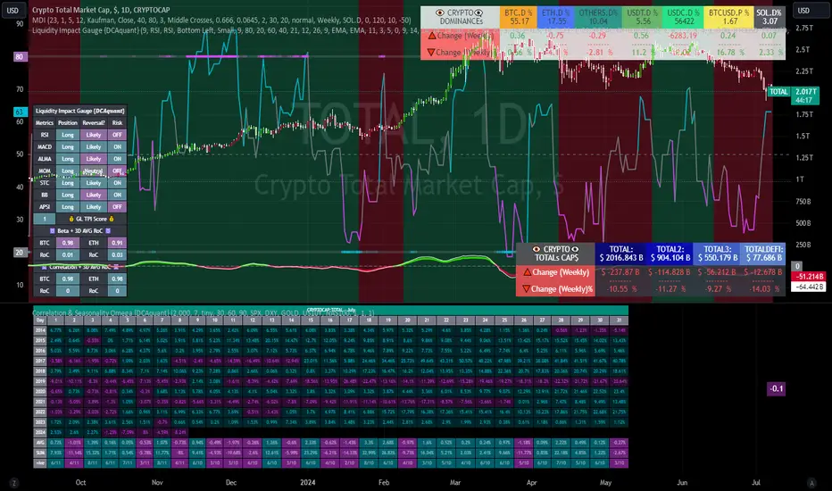 This indicator is designed to provide a comprehensive view of market liquidity and trends, aiding traders in making informed decisions based on a combination of technical analysis and global economic factors.