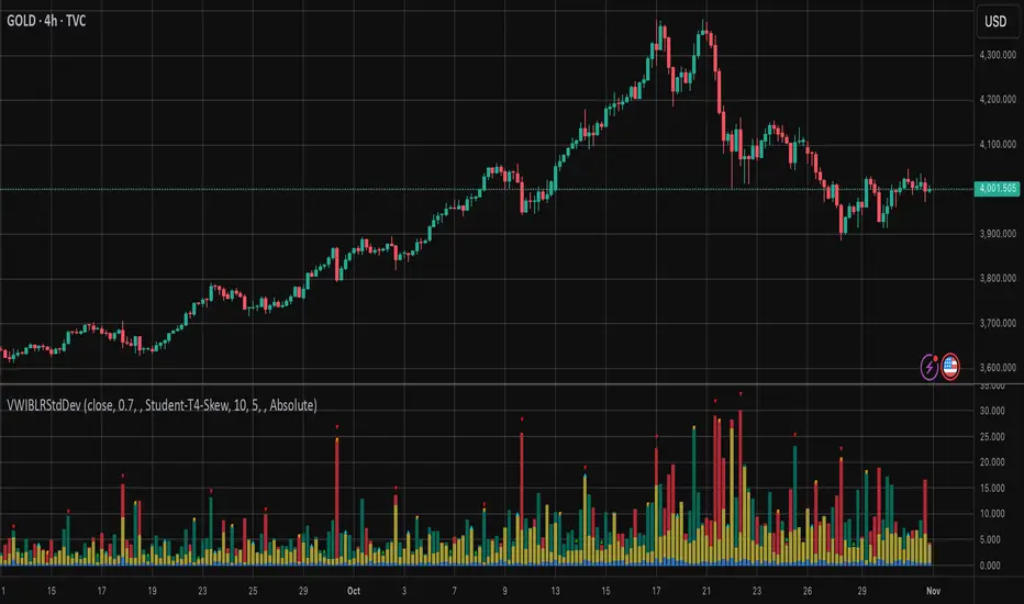 Residual Volatility (Yellow): Volatility from price oscillating around the intra-bar trendline (Mean-Reversion).