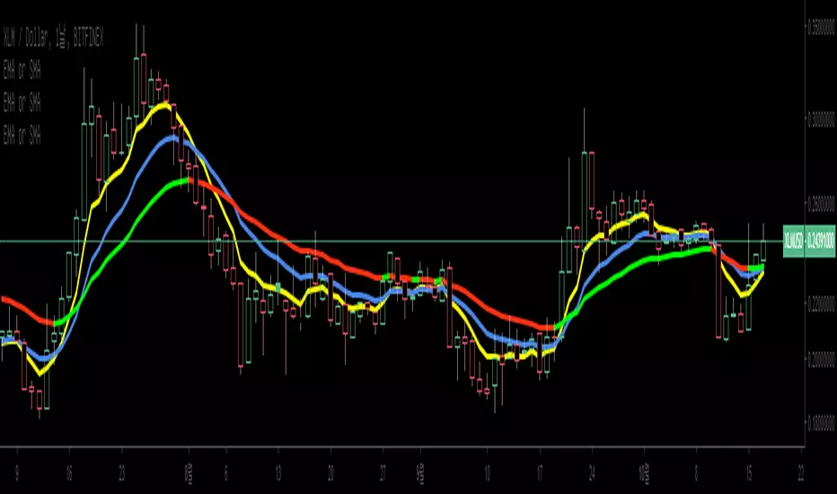 설정에서 exponential 을 체크하면 EMA 이며 체크하지 않으면 SMA 입니다.