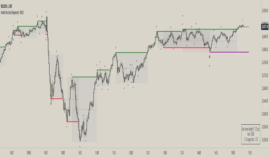 This indicator marks with labels and lines Market Structure in the timeframe of the chart (multi-timeframe will come, in the PRO version).
