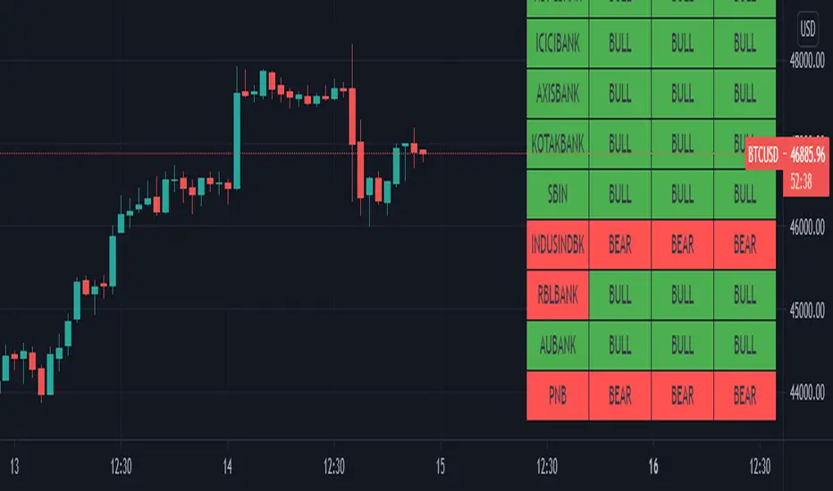 BANK NIFTY list of stocks with their multi timeframe EMA trend