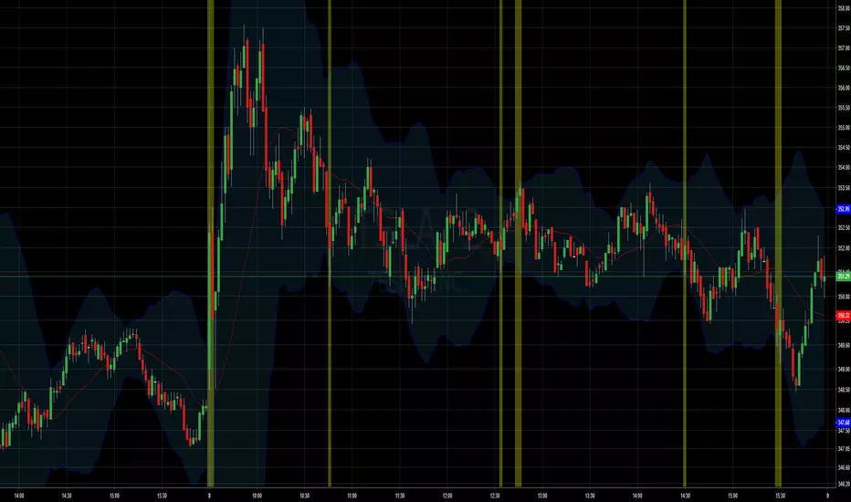 Just highlights a candle if the high is above the upper Bollinger Band or the low is below the lower Bollinger Band . BB defaults to 3SD. Anything less will happen to frequently.