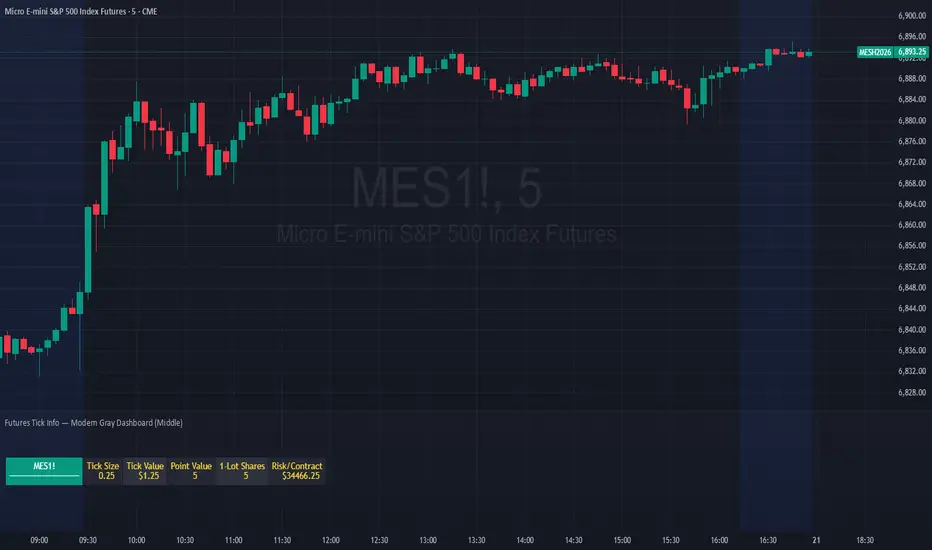 This is a simple dashboard that shows the novice future trade the necessary info about the info about the Micro on mini futures contract they are thinking about trading