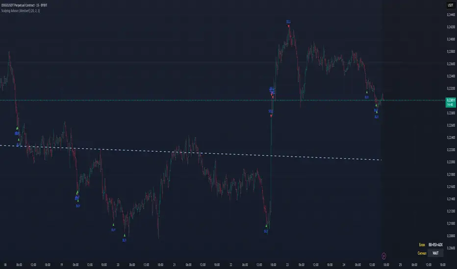 Scalping script. I added a dashboard table: it shows the BB+RSI+ADX block and the final signal (BUY, SELL, WAIT)