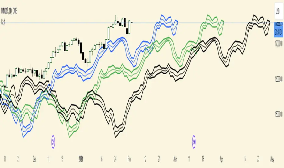 This indicator plots a visualization of the 20-40-60 day IPDA data range; (The IPDA data range helps traders identify liquidity, price gaps, and equilibrium points in the market, providing insights for optimal trade entries and market structure shifts). It does this using the same SMA logic as the intraday plot. What this means is it offsets the historical data of the daily chart 20, 40, or 60 bars forward. You can plot any combination of the three on the chart at one time, but these will not show on the intraday chart. This allows for visualization of where the market will possibly seek liquidity, seek to rebalance, or seek equilibrium in the future.