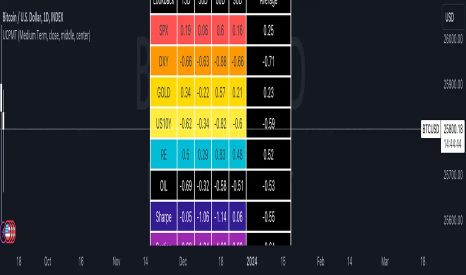 Correlation calculations for SPX, DXY, GOLD, US10Y, RE & OIL.