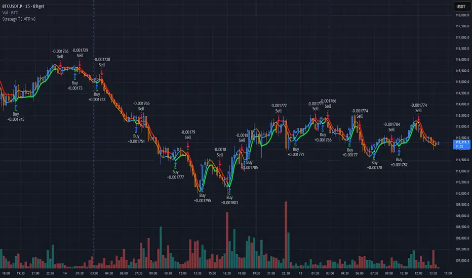 For boot alerts, use the Tilson T3 ATR GIM indicator. The strategy is for backtesting. Before using it, test it first, especially on aschi candles. Thank you, I hope it will be useful to you.