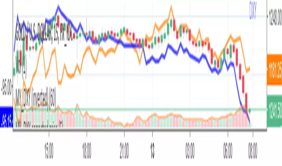 Plots the current ticker's price in "DXY corrected dollar". Overlay mode.