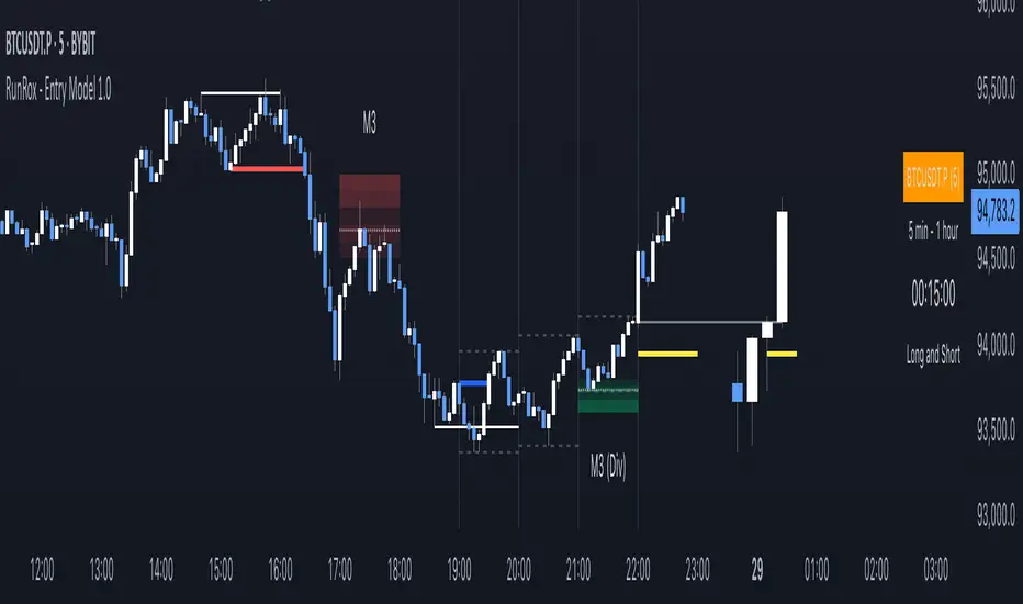 As shown in the screenshot above, we display higher-timeframe candles on the current chart to better visualize the entry model and keep the trader informed of what’s happening on the larger timeframe. The screenshot also highlights both the Long and Short models, as well as the Entry Area, which I will explain in more detail below.