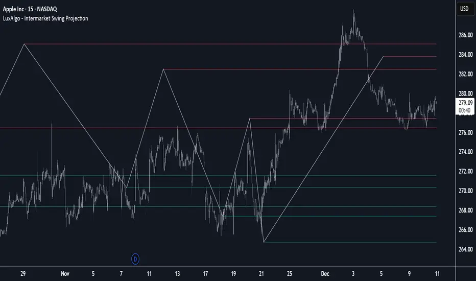 The Intermarket Swing Projection allows traders to plot price movement swings from any user-selected asset directly onto the chart in the form of zigzags and/or horizontal support and resistance levels.
