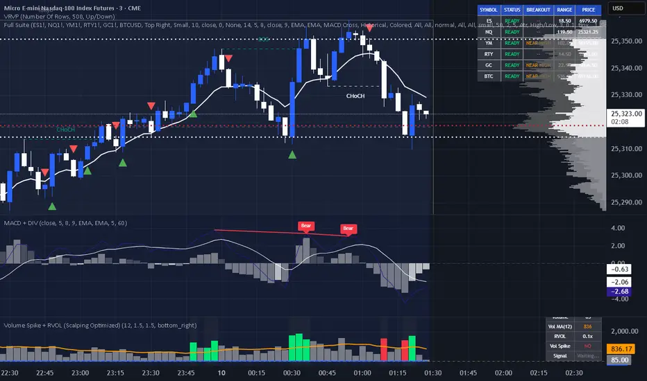 Advanced volume analysis tool combining three powerful metrics to identify high-probability scalping opportunities on 5m-15m timeframes.