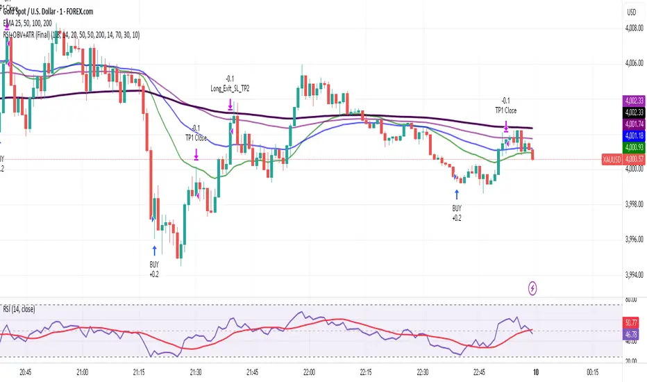 The system employs a sophisticated, dynamic stop-loss mechanism based on Average True Range (ATR) to adjust risk automatically to current market conditions. It manages trades via a two-tiered Take-Profit system to secure partial profits quickly and let the remaining position run to a secondary target, effectively locking in gains and achieving an optimal risk-reward balance.