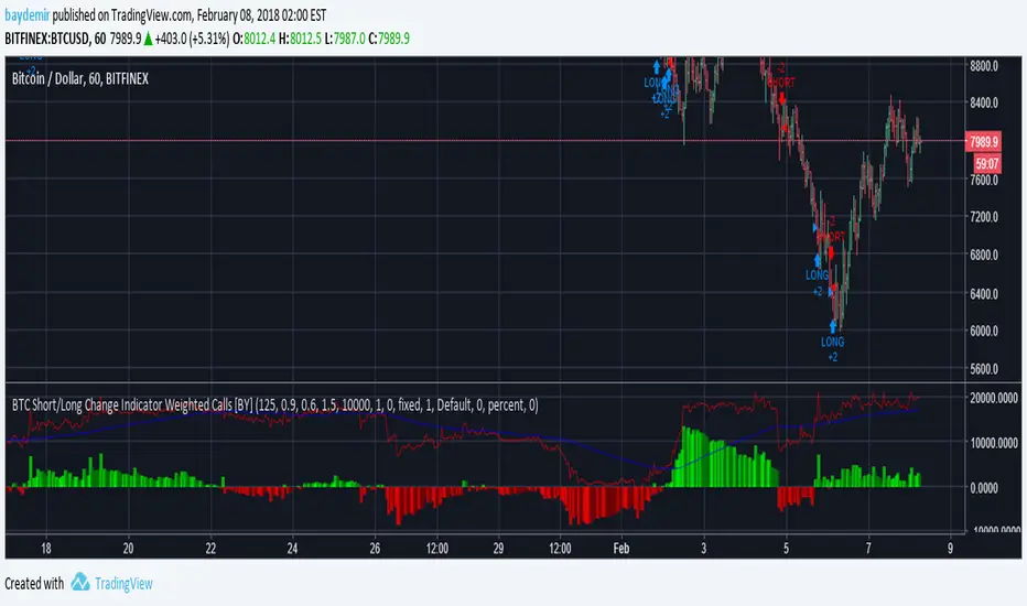 BTC Short/Long Change Indicator Weighted Calls [BY]