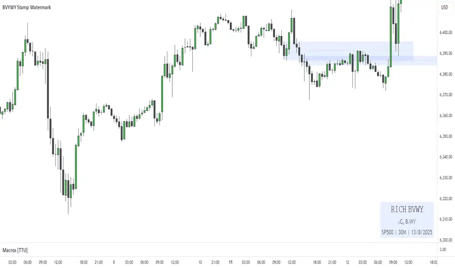 This script creates a clean, compact watermark “stamp” for your charts — combining a custom title/subtitle with symbol info (ticker, timeframe, date) in one neat block. It’s designed for traders and educators who want their charts branded and professional without clutter.