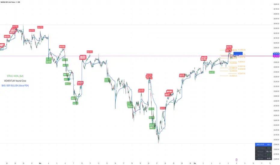 Overview The Apex Reversal Predictor v2.5 is a specialized mean reversion strategy designed for scalping high-volatility assets like NQ (Nasdaq), ES (S&P 500), and Crypto. While most indicators chase breakouts, this system hunts for "Liquidity Sweeps"—moments where the market briefly breaks a key level to trap retail traders before snapping back to the true value (VWAP).