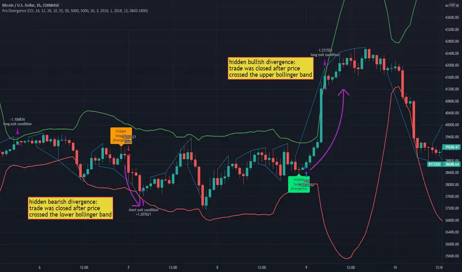 • You can display all divergences on the chart to get an idea of the current price action. Or you can pick any combination of signals you would like to include in a backtest. Possible signals are: regular bullish divergence, regular bearish divergence, hidden bullish divergence, hidden bearish divergence