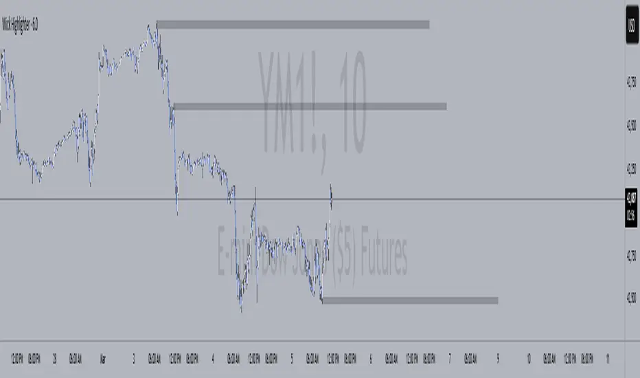 This script is a custom Multi-Wick Zone Highlighter that detects and highlights significant candle wicks on your chart. It is designed to work across multiple timeframes and uses time‑anchored boxes to “stick” to the original wick levels, ensuring that highlighted zones remain fixed even when panning or zooming the chart.