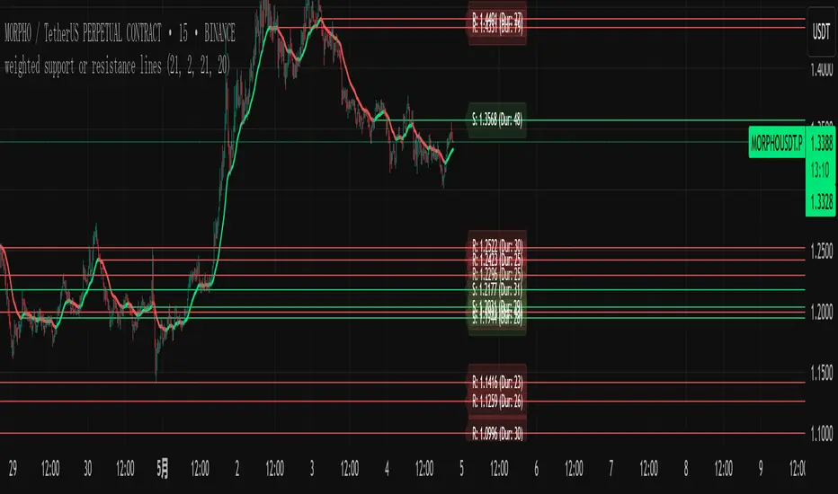 A: I found that in all the publicly available scripts about support and resistance lines, there is basically no weight identification for these lines. In other words, users do not know which support or resistance lines are the most important. So I specifically wrote this script.