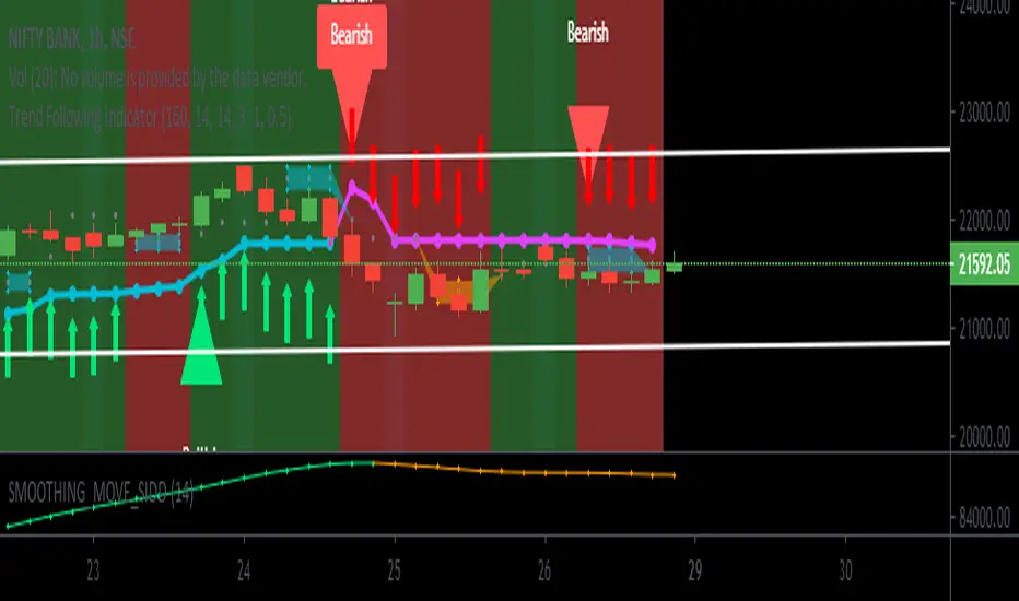 Each Bullish and Bearish signal you can add one more future or option lot and be in trade till bearish signal is not coming.