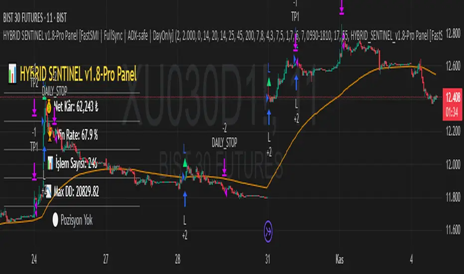 HYBRID SENTINEL v1.8 is a fully automated day-session trading strategy built with multi-layer trend filtration, adaptive volatility scaling, and a professional alert system.