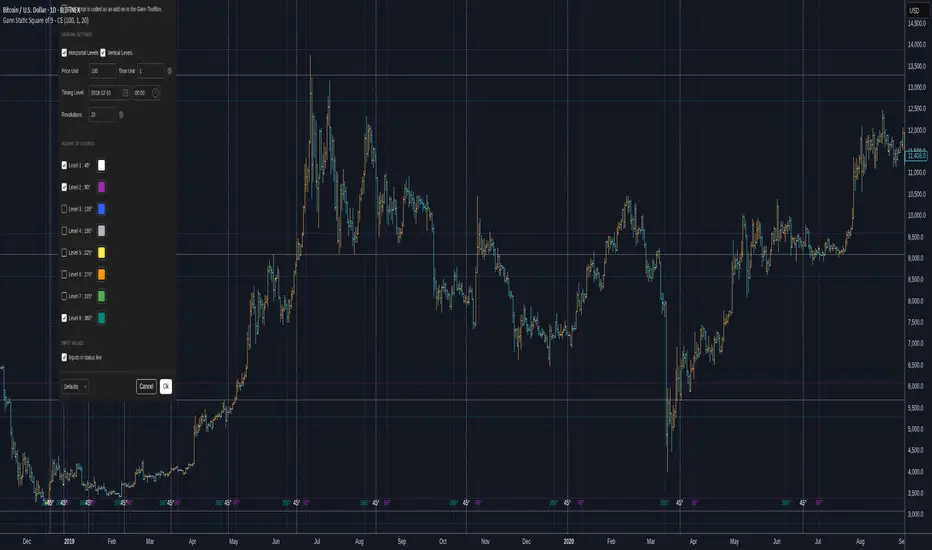 Welcome to the Gann Static Square of 9 - Community Edition, a meticulously crafted tool designed to empower traders with the timeless principles of W.D. Gann’s Square of 9 methodology. This indicator is tailored for the TradingView community and Gann Traders, providing a robust solution for analyzing price and time dynamics across various markets.