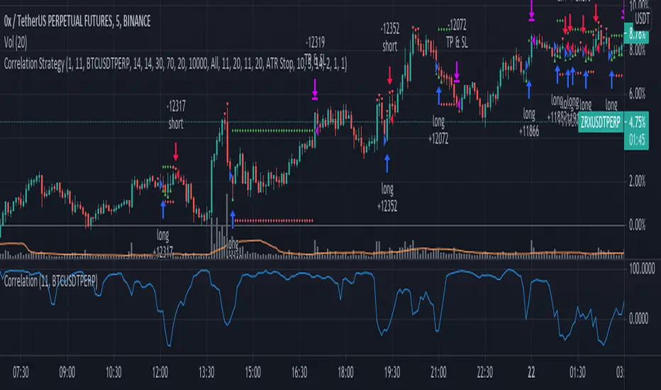 between security A (user defined) and security B (used on the chart) closing prices. If the correlation