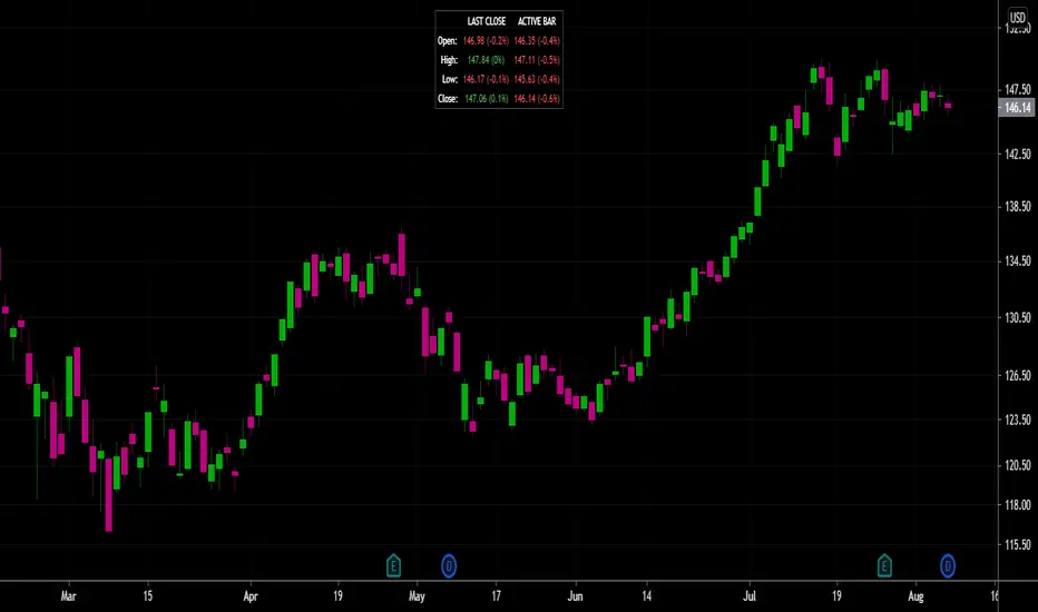 Display a table with the latest bar information so you can compare to historical data when you scroll back through the charts.