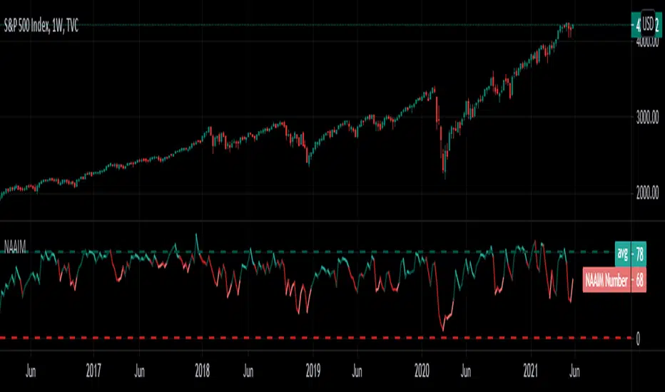 The NAAIM Exposure Index represents the average exposure to US Equity markets reported by members.