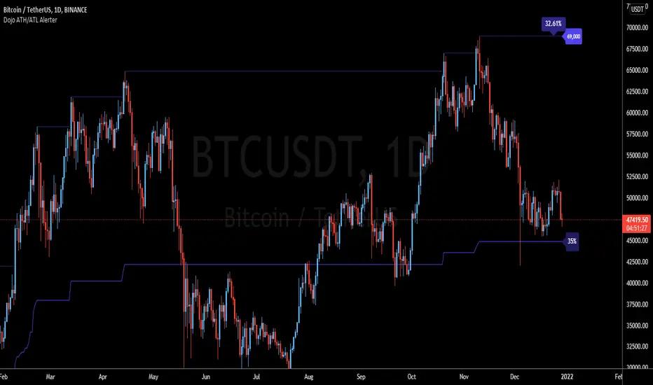 * Note: the indicator excludes the current candle so if you hit ATH yesterday and you're on the weekly timeframe , it won't fire off an alert. For better resolution use Daily or lower if the asset you are alerting on is very volatile.