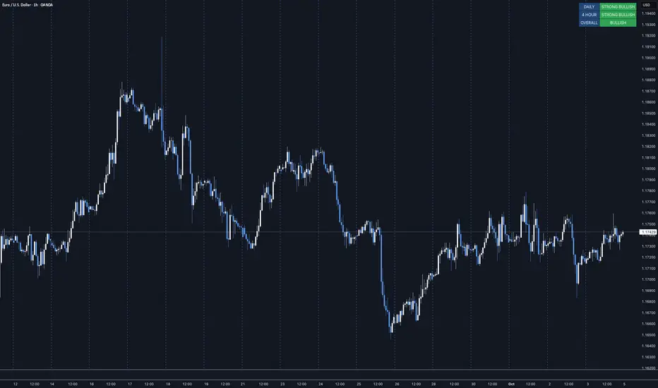 The MTF Trend Dashboard LITE by G.C provides instant directional clarity between the Daily and 4-Hour timeframes using refined EMA (9 / 21) logic.