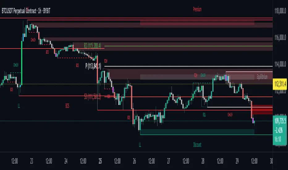 Индикаторът е създаден за трейдъри, които следват логиката на институционалния анализ и търсят прецизни входове и изходи на база пазарна структура.