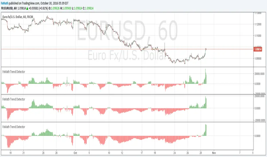 FxMath Trend Detector is very simple indicator according RSI & CCI . For better observation is better to use indicator with 3 period 50,100,150 and if in all periods color is match you can go for buy or sell.