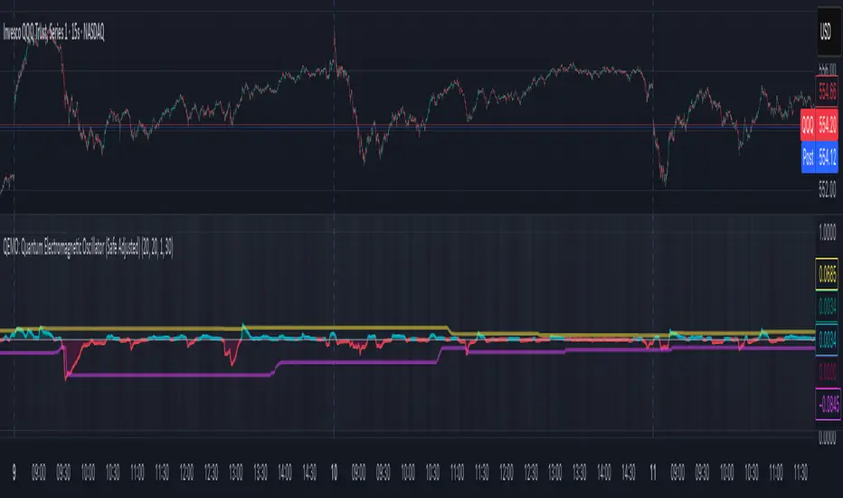 This is a highly conceptual and oscillator and It attempts to model market dynamics by borrowing concepts from quantum physics and electromagnetism to create a unique oscillator. It does not represent any real physical phenomena but uses these concepts as metaphors for market forces.